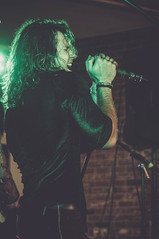 The guys do an amazing job of channeling an era of music that isn't focused on much in smaller venue and bar settings. They aren't trying to pander to the likes of every individual in the crowd with a set list that plays like a dive bar jukebox or the sing alongs at a Braves Baseball game. These guys go hard. They rock. You love that they rock. I only found 1 individual at the show that had had enough. At roughly 8:30pm, I was standing to the left end of the stage, near the digital board, and I noticed a greyish cat scurry to my left as I brought the camera up to my eye. I've seen a lot of cat's downtown, and I've got nicknames for most of them. This wasn't Socks and it wasn't Patches. It wasn't Garfield and it wasn't Smoky. So I took a peak and realized this was a newer resident to the area...