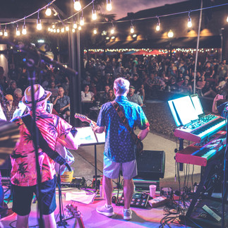 This band isn’t a collection of players—it’s an ensemble where everyone brings something unforgettable. Ashley Foreman looked overjoyed hammering away at his cowbell. Clay Killian’s trumpet soared with a bright, brassy tone that gave songs their beachside shimmer. Darrell Rains absolutely shredded when the moment called for it. Mark Ferriter’s drumming anchored every tune, but it was his vocals—powerful and smooth—that caught people off guard. Mike Terry’s saxophone added that same sunlit beach vibe, weaving in with Clay’s horn. Randa Berry’s keyboards and vocals lit up the night, especially when she tore into Adele and brought the crowd to its feet. And through it all, Steve Moore’s bass held everything steady, the pulse beneath the songs.